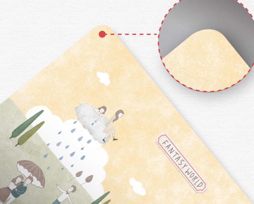 양끝부분에 각이 진 부분을 둥글게 곡선으로 재단하는 가공법을 말합니다.
