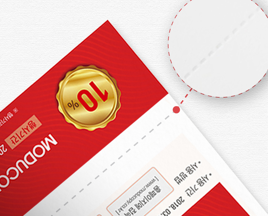 손으로 잘라낼 수 있도록 점선으로 미리 재단을 해 놓아 쉽게 뜯을 수 있도록 하는 가공법을 말합니다.